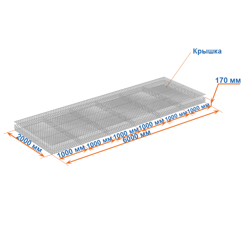 Габион матрац ГСИ-М 6х2х0,17 оцинкованный, Ø проволоки 2,7 мм, размер ячейки 6х8 см
